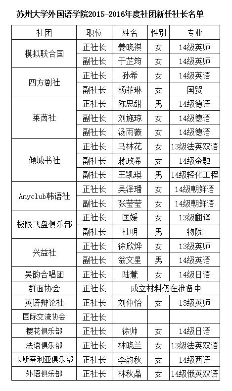 2016科协名单 理事长:孙希 杨文佳 杨颖 王佳慧 秘书处部长:丁珍 石菁倩秘