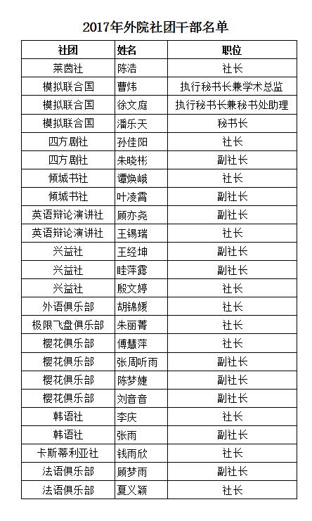 2017科协名单理事长:孙浩然 杨易育 王佳慧 柏司原 秘书处部长:汝琳 张秋芳 周欣安秘